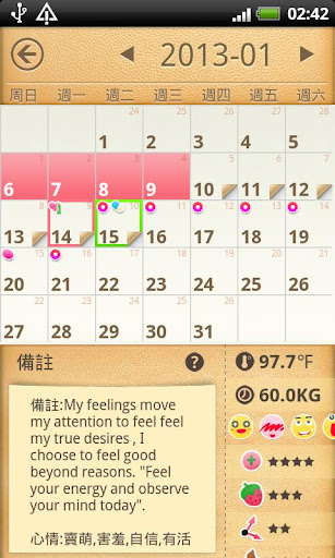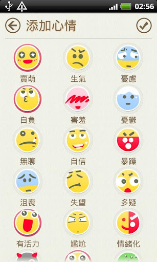 各式各樣的心情也可以加到日記裡 :D